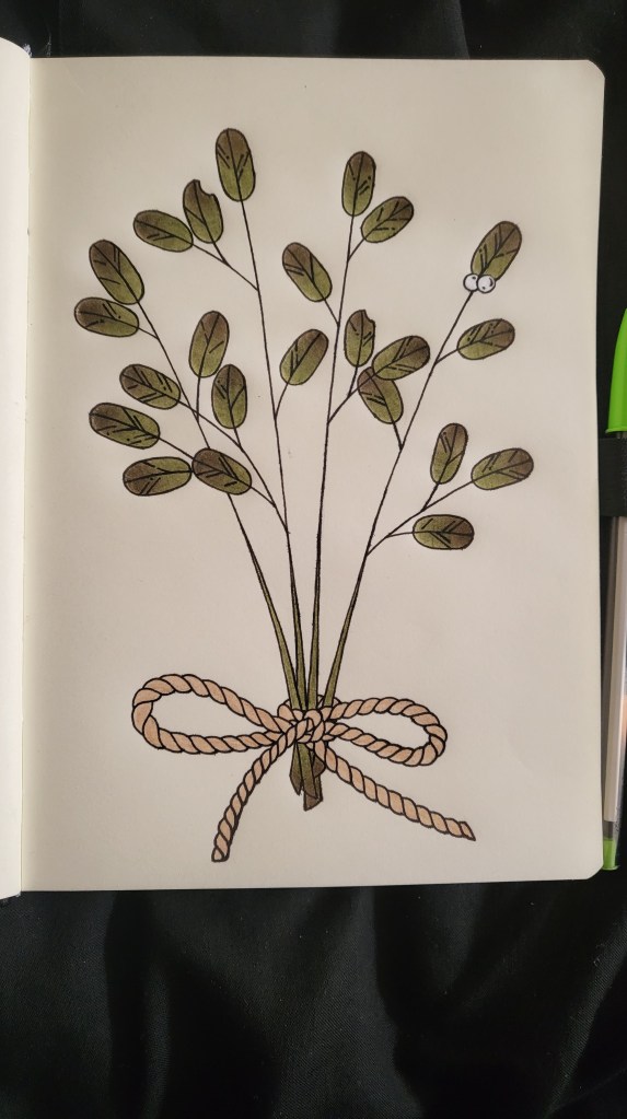 I like plants. And, while I may not be a very good plant parent, I thought that they could be a fun subject for this cipher. You can make them as simple or intricate as you like. I could have each leaf represent a syllable. It’s something that could be hidden in the background of something else. Plants were the perfect subject.