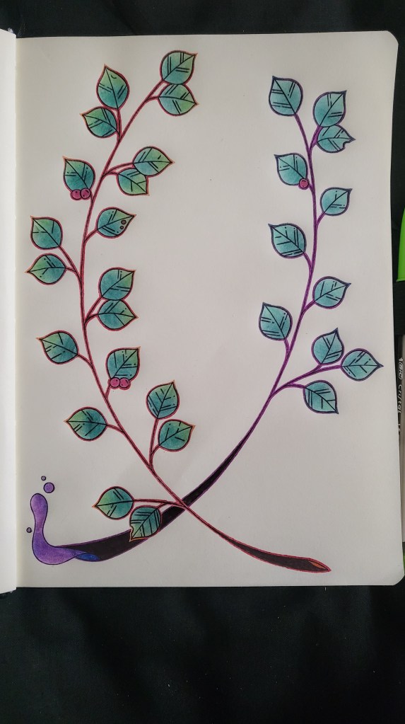 This is just a reflection of my own thoughts and I decided to use it to experiment and practice a bit. The main things that I wanted to try were doing a gradient for the main outline and doing a piece that is just one long plant.