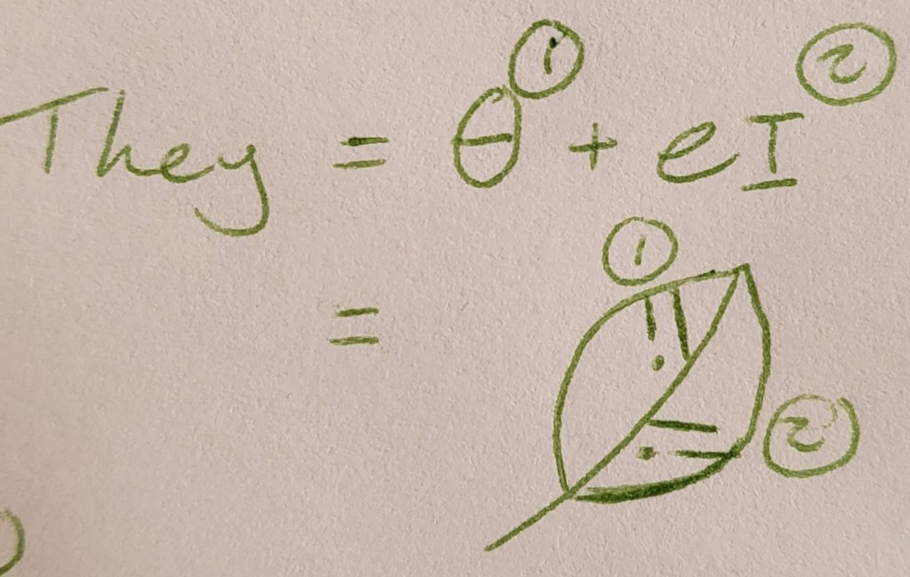 Let’s use the word ‘they’ as an example. The word ‘they’ is a single syllable and is therefore written on a single leaf. The word is comprised of 2 sounds – a short ‘th’ sound [1] and a longer ‘ay’ sound [2].