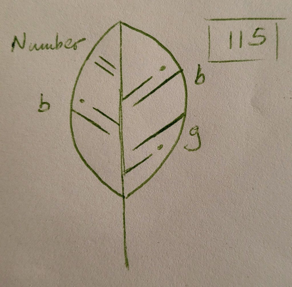 The leaves are read from tip to base and the leaf lines alternate down the central line of the leaf. You always start in the top left [2].