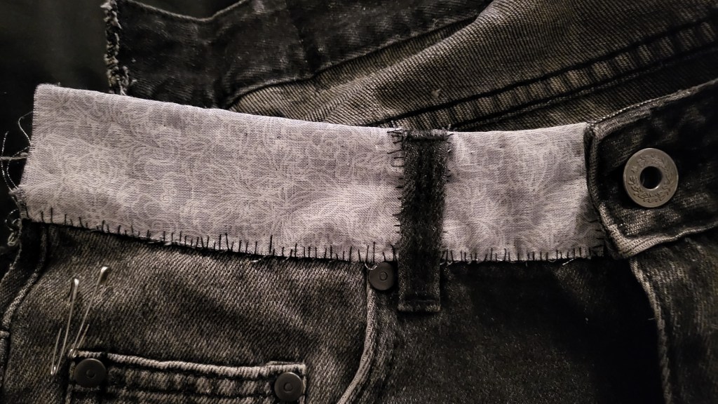 After that, I added some fabric around the top band of the shorts. I used the reverse side of the fabric for this and did it in 2 pieces to get around the belt loop. This probably wasn’t the best way to go about it and I think it ended up being my least favourite part of the shorts. At least this bit is easily hidden by whatever I wear on top.