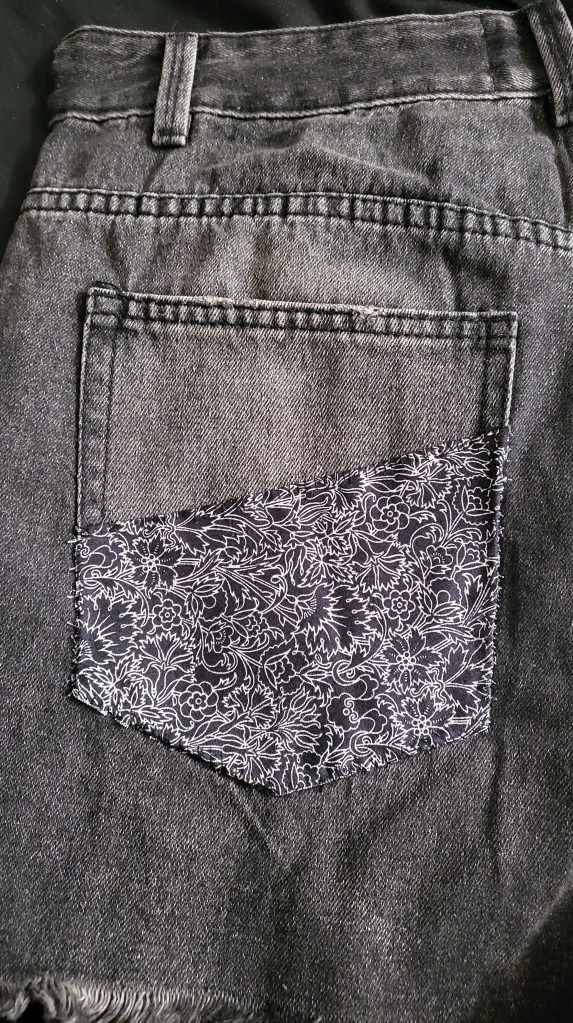 The last thing that I added to the shorts (before going back to the panels) was some fabric to one of the ass pockets. Not much to say about this one; it looks nice enough.