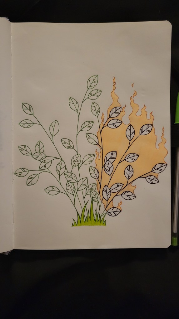 Also, fun fact – the word ‘fire’ isn’t actually on fire in this piece. This was unintentional…but quite funny.