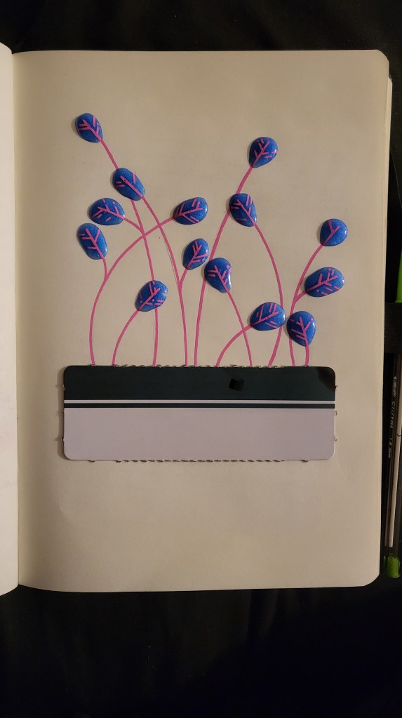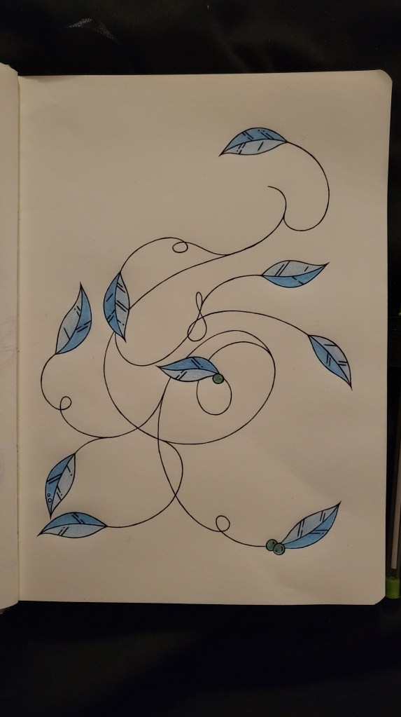 As previously stated, I tried using a more realistic style for this piece and I think it worked quite well. Don’t get me wrong, I definitely wasn’t aiming for realism (I am not that talented). I also wanted try using leaves on only one side of the plant, just to see what it would look like, and I think that also worked well for this piece.