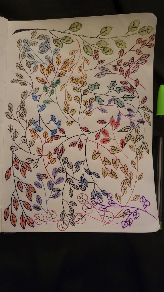 This one is pretty self-explanitory. I got new pens, which I wanted to test out, and my face was hurting that day. I still don’t 100% know why my face was hurting…but I have my suspicions.